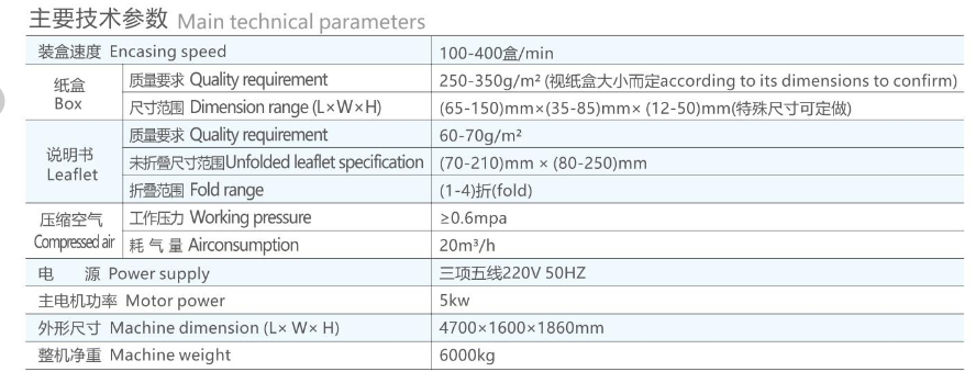 本產(chǎn)品是我公司結(jié)合國外裝盒機(jī)的先進(jìn)技術(shù)及根據(jù)國內(nèi)制藥行業(yè)的實(shí)際情況而研發(fā)的擁有新型,具有先進(jìn)的連續(xù)式高速多功能自動裝盒機(jī),是機(jī)、電、氣、光一體化的高科技產(chǎn)品。本產(chǎn)品適用于鋁塑藥板、枕包袋、瓶、口服液、鋁/塑管、面膜、及各類電子、日用品等以及相類似物品的裝盒包裝,具有自動完成使用說明書的折疊、紙盒自動打開、物品裝盒、打印批號、封盒等功能。該機(jī)可以單獨(dú)使用亦可以與其他設(shè)備聯(lián)動使用,形成聯(lián)動生產(chǎn)線。